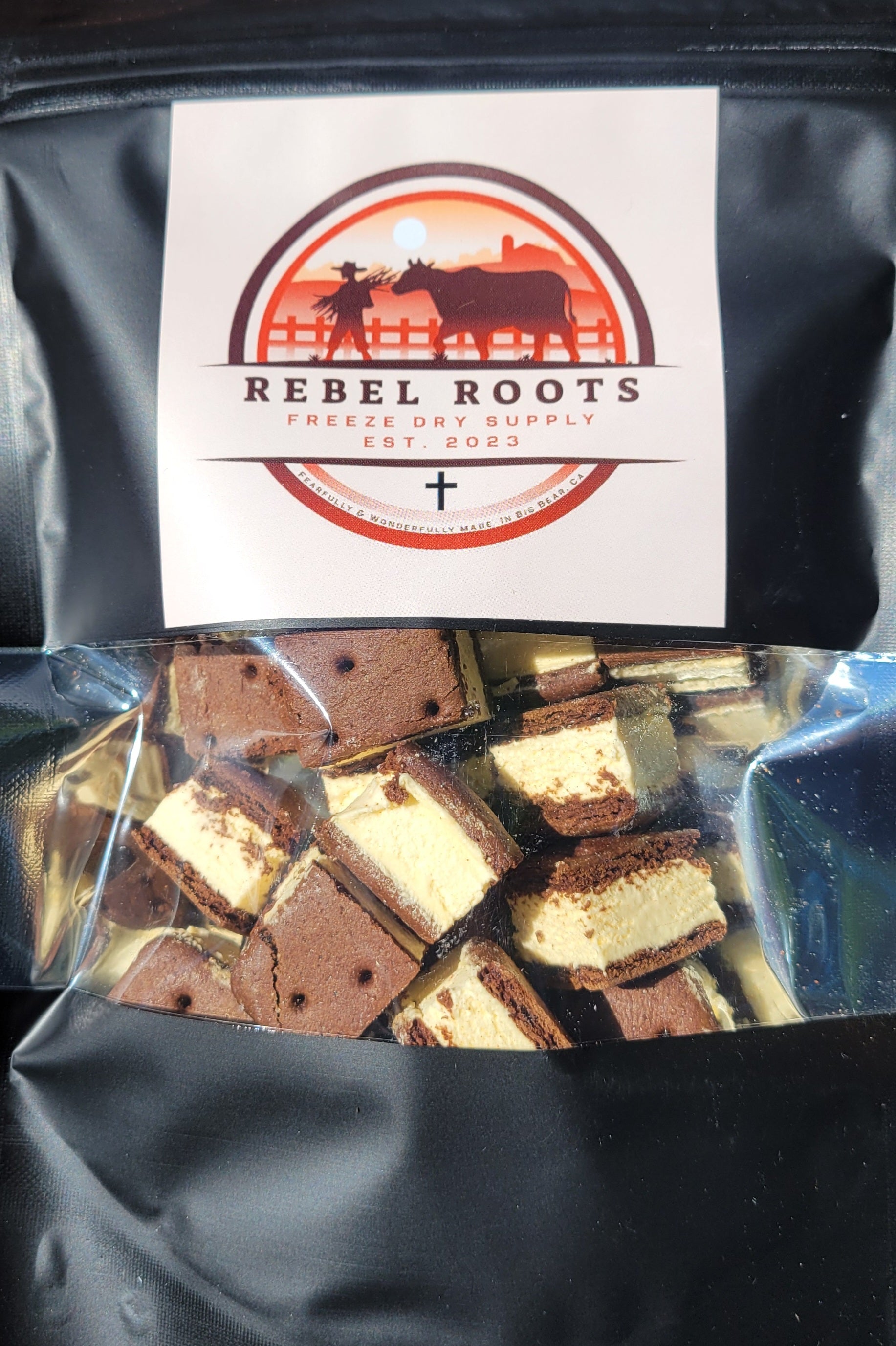 Freeze Dried Ice Cream sandwich bites. No refrigeration needed. 5 year shelf life