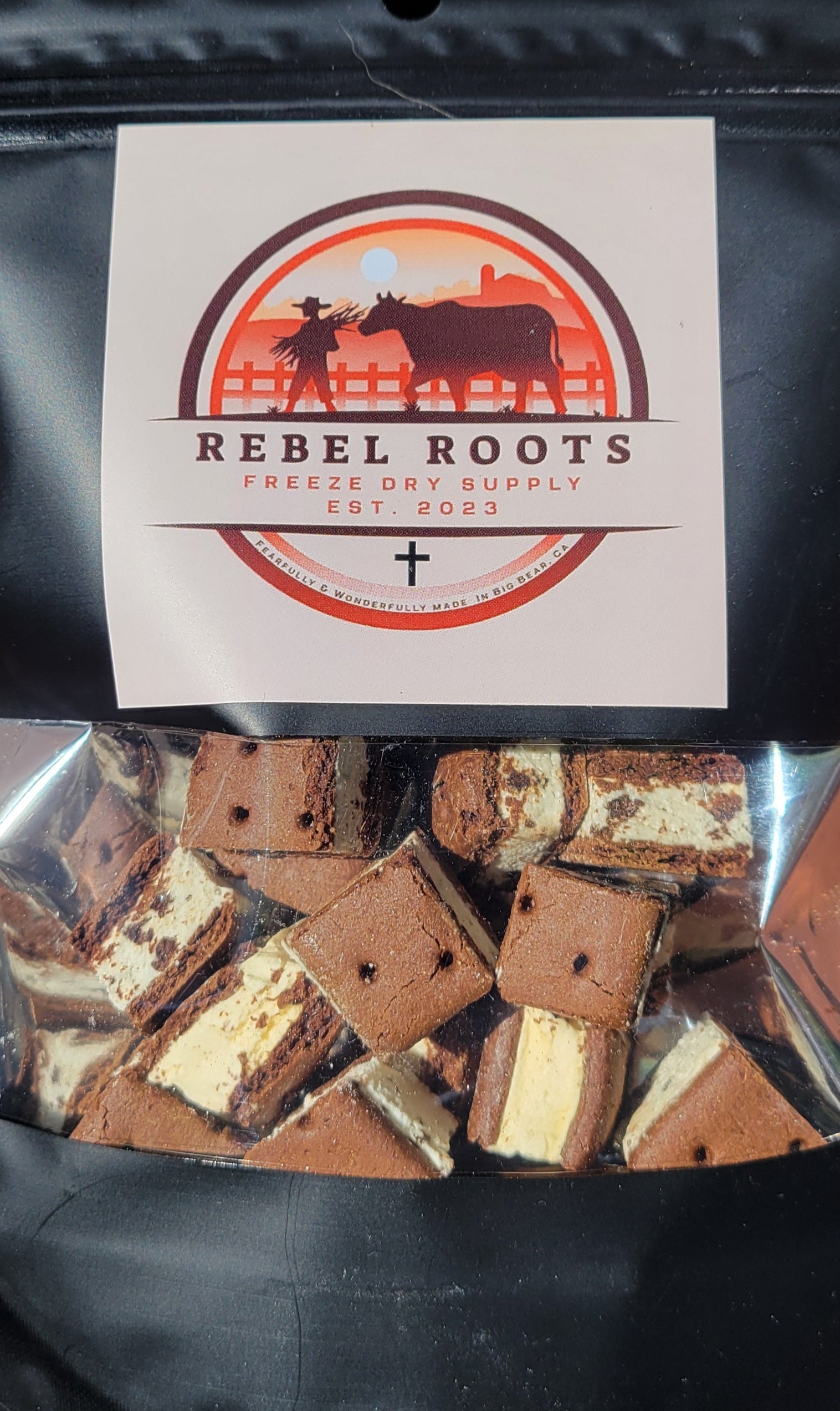 Freeze Dried Ice Cream sandwich bites. No refrigeration needed. 5 year shelf life